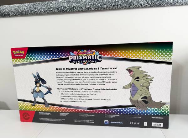Brand new Pokemon Trading Card Game Scarlet And Violet Prismatic Evolutions Lucario and Tyranitar ex Premium Collection Box. Sams Club Exclusive. New sealed box. Smoke free home. Asking $125 Call or...