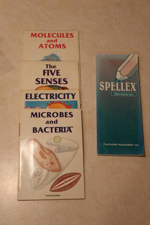 Set #4 - Assortment for about 3rd grade and up. Includes 20 books. Some of the books include: 2 books on space & planets, Our Amazing Sun, Our Amazing Ocean, 101 Space Jokes, 4 book set (Electricity, 5 Senses, Molecues & Atoms, Microbes & Bacteria), Tales of a Fourth Grade Nothing, Realm of the Panther, HuckleberryFinn, Spotters Guide to the Weather, Thesaurus, and others. (Pictures #19 - 24)